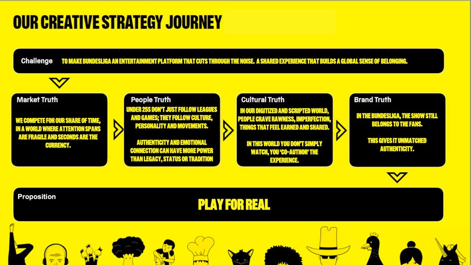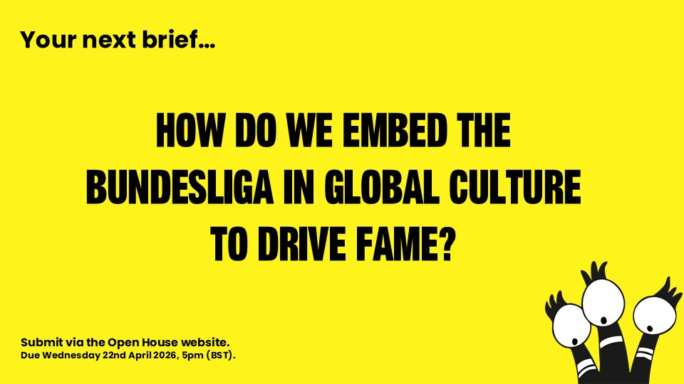 It’s week 6 and a final Media + PR Task set by Partha and Rhian for the Bundesliga Brief. Coursework tasks are completely optional but we’d encourage you to have a go to help bring the learning to life. If you’ve got something good, you can submit it here before the deadline at 5pm BST on Wednesday 22 April. Here’s a reminder of our creative strategy journey…